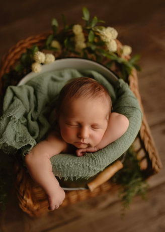 Podczas sesji wykonuje stylizowane ujęcia samego maluszka, z rodzeństwem a także ujęcia rodzinne.
